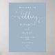 This elegant dusty blue heart script wedding welcome sign can be personalised with your information in chic typography. Designed by Thisisnotme©