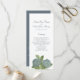 Dusty blue hydrangea floral bouquet in a beautiful Wedding Ceremony Program. A simple blue flower design with a beautiful botanical script.