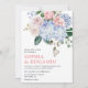Dusty blue hydrangeas pastel pink roses wedding invitation
