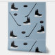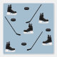 An ice hockey stick, ice hockey skates and ice hockey puck pattern on a dusty blue background colour. Perfect for ice hockey lovers and sports enthusiasts, athletes, kids and adults.