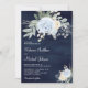 Dusty Blue Ivory Floral All in One Navy Wedding Invitation