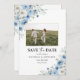 Dusty Blue Ivory Save The Date with Photo Card. This stylish & elegant Bridal Shower Invitation features gorgeous hand-painted watercolor Dusty Blue Ivory Floral. Find matching items in the Dusty Blue Ivory Floral Collection.