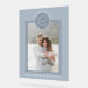 Create a serene and sophisticated entrance with our Dusty Blue Leafy Crest Monogram Photo Wedding Acrylic Sign. This beautiful sign blends the calming tones of dusty blue with the elegance of a delicate leafy crest, framing your custom monogram with timeless grace.
