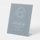 Dusty Blue Leafy Crest Monogram Wedding Guestbook Pedestal Sign