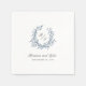 Dusty Blue Leafy Crest Monogram Wedding Logo Napkin