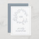 Dusty Blue Leafy Crest Monogram Wedding RSVP Card