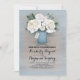 Painted dusty blue mason jar and white flowers rustic country rehearsal dinner invitations