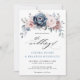 Dusty Blue Mauve Rose Pink Slate Floral Wedding Invitation