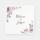 Dusty blue, mauve and white watercolor flowers and foliage, personalised paper napkins. Napkins feature, pretty floral corner frames with black script template text lines for names. Designed to match our Dusty Blue Mauve Floral Collection.