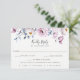 Watercolor floral and foliage arrangement in shades of dusty blue, white and mauve with dusty blue colour backing, wedding RSVP cards with meal choice option. Modern and elegant typography design style template. Designed to match our Dusty Blue Mauve Floral Collection.