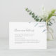 Modern chic minimal watercolor botanical foliage greenery design in dusty blue colour, elegant and romantic, great accommodations card for modern wedding, rustic wedding, and botanical garden wedding.