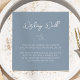This dusty blue minimal leaf wedding wishing well enclosure card design perfectly embodies a modern romantic aesthetic. Featuring a classic blend of dusty blue background with minimal white leaf patterns gracefully complemented by a simple calligraphy script paired with an understated serif font. The result is a perfectly polished feel for your wedding, ensuring every detail reflects the elegance of your love story. Explore our curated selection of coordinating invitations, save-the-dates, enclosure cards, as well as ceremony and reception decor in the Dusty Blue Minimal Leaf Wedding Collection. The collection provides effortless options for presenting a truly beautiful and memorable marriage celebration. Whether your event graces the spring, summer, fall, or winter, the timeless vintage feel of these designs promises a charming and enchanted way to honour your unique journey together. We hope you fall in love with this collection as much as we have. For any questions or special requests for our designs, please do not hesitate to reach out. We are delighted to help in any way possible.