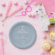 This elegant dusty blue first holy communion paper plate can be personalised with your information in chic typography. Designed by Thisisnotme©