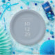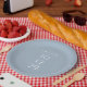 Elegant paper plate featuring your special date and names set in modern typography on a dusty blue background. Designed by Thisisnotme©