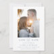 Modern, elegant save the date card features a minimalist dusty blue and white design. Personalise with your wedding details with the easy to edit template featuring an elegant script font and classy serif font. Then, replace the photo on the front with your own. Check out matching items in the “Dusty Blue Modern Elegant” collection.