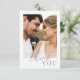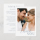 Modern, elegant flat thank you card features a minimalist dusty blue and white design and bold "thank you". Personalise with your wedding details with the easy to edit template featuring an elegant script font and classy serif font. Replace the photo on the front with one from your wedding. Add your own message or delete the text so you can handwrite your message on the back. Check out matching items in the “Dusty Blue Modern Elegant” collection.