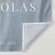 Modern, elegant wedding tapestry for a welcome sign features a minimalist dusty blue and white design with modern lines. Personalize this fabric sign with your wedding details with the easy to edit template featuring an elegant script font and classy serif font.
