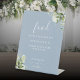 Dusty Blue Modern Floral Greenery Food Menu Pedestal Sign