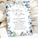 Dusty Blue Modern Floral Wedding Reception Invitation