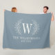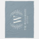 Dusty Blue Modern Laurel Leaf Monogram Fleece Blanket