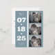 Dusty Blue Modern Minimalist Bold Date Three Photo Foil Holiday Postcard