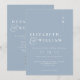 This dusty blue minimalist monogram wedding invitation can be personalised with your information and wedding website QR code in modern typography. Designed by Thisisnotme©