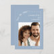 Announce your special day in style with this modern dusty blue Save the Date card. Featuring your favorite photo framed by a minimalist white line border, it perfectly blends timeless elegance with a personal touch. The handwritten script adds a romantic detail, while the clean layout keeps the design contemporary and easy to customize.