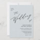 Dusty Blue Modern Script All In One Simple Wedding Invitation