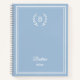 A timeless dusty blue colored planner designed with a refined monogram and delicate white wreath details.