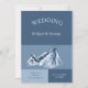 Set a serene and majestic tone for your special day with this modern wedding invitation, featuring a striking snow-capped mountain peak. The design uses a sophisticated dusty blue and navy color palette, creating a calm and noble aesthetic perfect for mountain, winter, or destination weddings. The contemporary layout features a unique curved "WEDDING" typography and clean geometric sections for a minimalist, professional look. This invitation is ideal for couples seeking a nature-inspired, artistic stationery suite that feels both trendy and timeless. Please note that this product features generative content to create its unique artistic imagery. Easily personalize this template with your names, wedding date, and ceremony details to create a truly one-of-a-kind keepsake for your guests.
