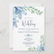 Dusty Blue & Navy Blue Blooms Wedding Invitation