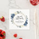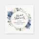 Dusty blue floral bridal shower napkin featuring elegant bouquet of navy blue, royal blue , white , gold, champagne ivory, blush colour rose , ranunculus flower buds and sage green eucalyptus leaves and elegant watercolor bouquet. Please contact me for any help in customisation or if you need any other product with this design.