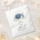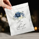 Dusty blue floral wedding bridal shower favour bag featuring elegant bouquet of navy blue, royal blue , white , gold, champagne ivory, blush colour rose , ranunculus flower buds and sage green eucalyptus leaves and elegant watercolor bouquet. Please contact me for any help in customisation or if you need any other product with this design.