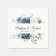 Dusty blue floral wedding paper napkin featuring elegant bouquet of navy blue, royal blue , white , gold, champagne ivory, blush colour rose , ranunculus flower buds and sage green eucalyptus leaves and elegant watercolor bouquet. Please contact me for any help in customisation or if you need any other product with this design.