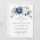 Dusty Blue Navy Champagne Ivory QR Code Wedding Invitation