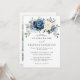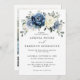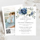 Dusty blue floral QR code photo wedding Invitation featuring elegant bouquet of navy blue, royal blue , white , gold, champagne ivory, blush colour rose , ranunculus flower buds and sage green eucalyptus leaves and elegant watercolor bouquet. Please contact me for any help in customisation or if you need any other product with this design.