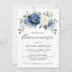 Dusty blue floral Quincenera Invitation featuring elegant bouquet of navy blue, royal blue , white , gold, champagne ivory, blush colour rose , ranunculus flower buds and sage green eucalyptus leaves and elegant watercolor bouquet. Please contact me for any help in customisation or if you need any other product with this design.