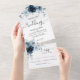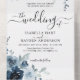 Dusty Blue Navy Floral Boho Botanical Wedding RSVP All In One Invitation
