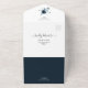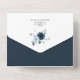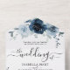 This elegant navy and dusty blue wedding all in one invitation is designed with an easy to tear off perforated RSVP postcard. Simply fold the card, seal and send (no envelope needed).