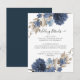 Dusty Blue Navy Floral Watercolor Wedding Details Invitation