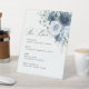 Dusty Blue Navy Floral Wedding Bar Menu Template Pedestal Sign