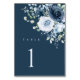 Dusty Blue Navy Floral Wedding Table Number Sign