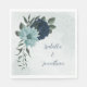Unique wedding paper napkin featuring romantic dusty blue and navy flowers and green leaves
