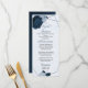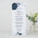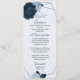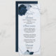 beautiful dusty blue and navy blue flowers and elegant leaves geometric wedding menu.