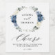 Dusty blue floral wedding favour wine label featuring elegant bouquet of navy blue, royal blue , white , gold, sparkling wine ivory, blush colour rose , ranunculus flower buds and sage green eucalyptus leaves and elegant watercolor bouquet. Please contact me for any help in customisation or if you need any other product with this design.