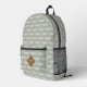 Dusty Blue Neutral Birds Cranes Art Deco Monogram Printed Backpack