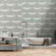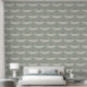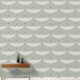 Dusty Blue Neutral Birds Cranes Art Deco Pattern Wallpaper