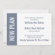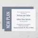 Here's a bold, modern card for notifying your guests if it's become necessary to change your wedding date. Use the template fields to add your personal details and make this unique, simple design your own. A colour block along the left is a dark dusty blue, matching the text and back of the card; "NEW PLAN" appears in bold white over this strip on the left. All fonts and colours are also editable. Please reach out with any special requests or for customising assistance. Other pieces with alternate wording are also available in the collection.