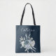 Dusty Blue wildflowers Boho Script Personalised Name Tote Bag.