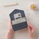 This unique wedding invitation design invites your guests to your travel wedding in style. The top page of the passport book contains your invitation, with a ticket appearing to peek out from behind it. Add your QR code to easily take guests to your wedding site. The bottom portion of the invitation tears off, giving your guests an rsvp postcard to return.
